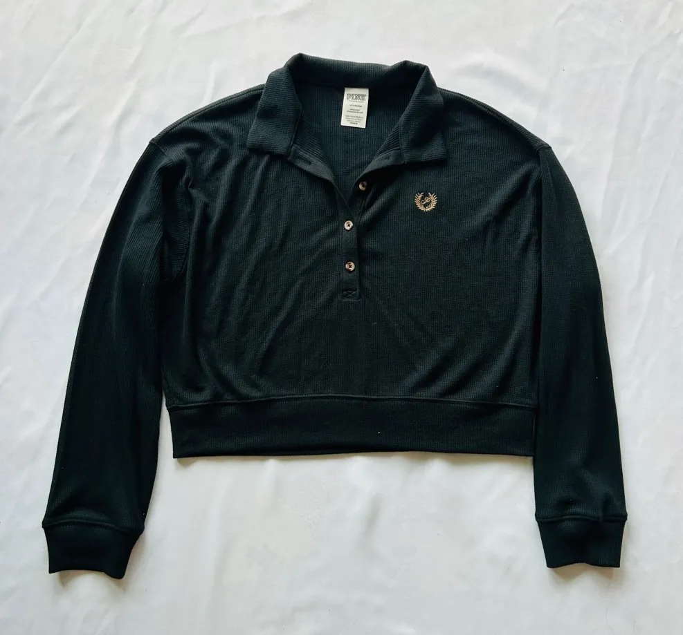 NWOT Victorias Secret PINK Large Black Top Waffle Knit Cropped Lounge Casual - $15 - From Juniper