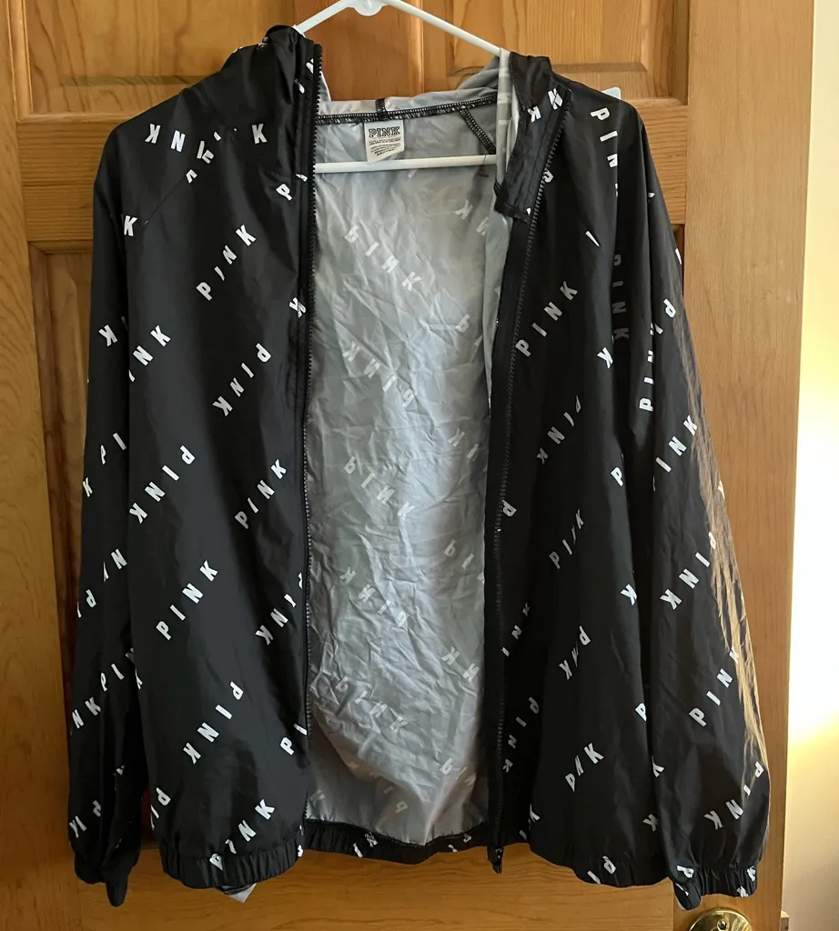 Pink by Victoria’s Secret VS black white pink logo lightweight jacket size xs - $35 - From Kristine