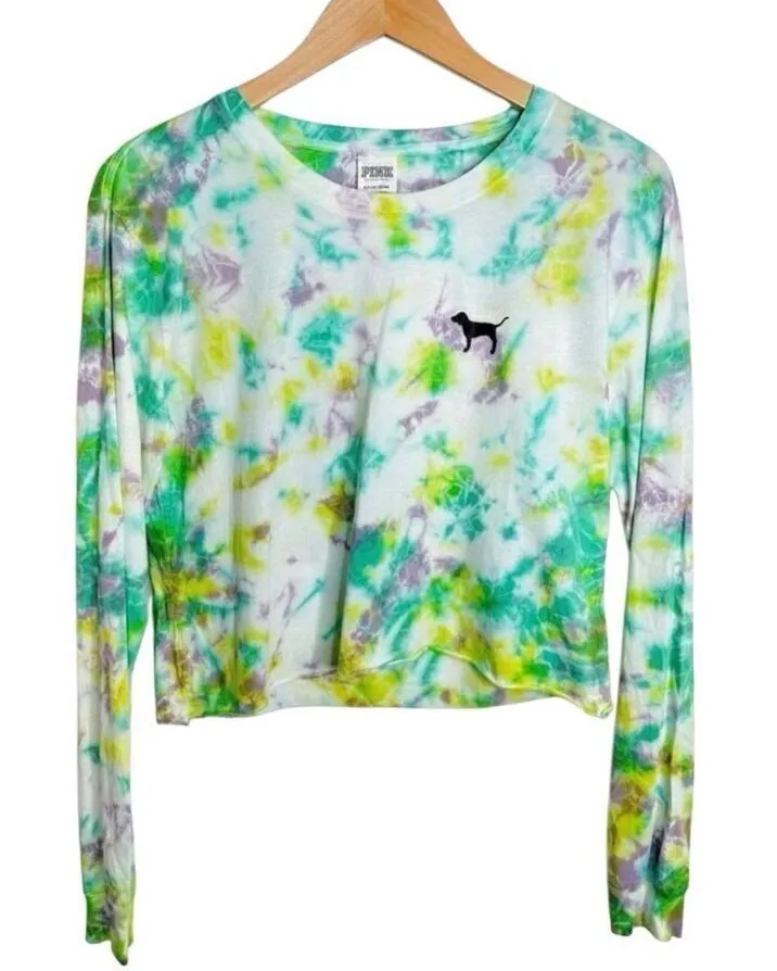 PINK Shirt Womens Cropped Long Sleeve Crewneck Tie Dye Shirt Size Small Great pre-owned condition... Show more
