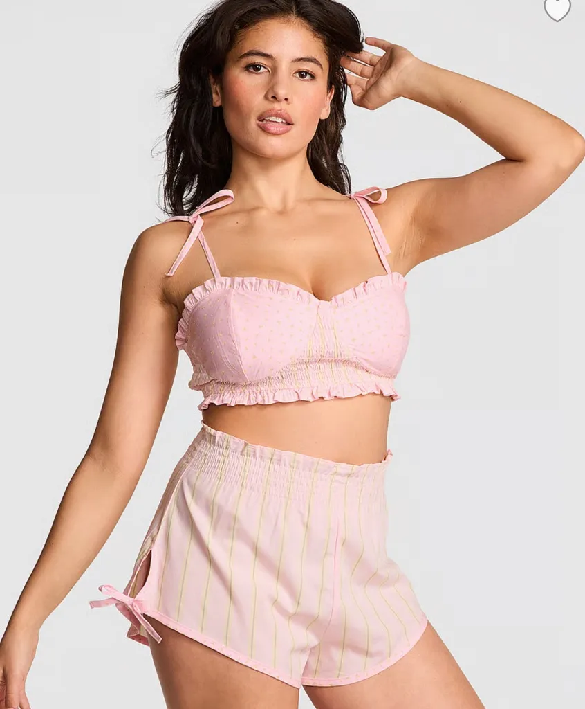 PINK is a lingerie and apparel line by Victoria's Secret, targeting younger women. The PINK brand sells underwear, swimsuits, sleepwear, loungewear, beauty products, and accessories.