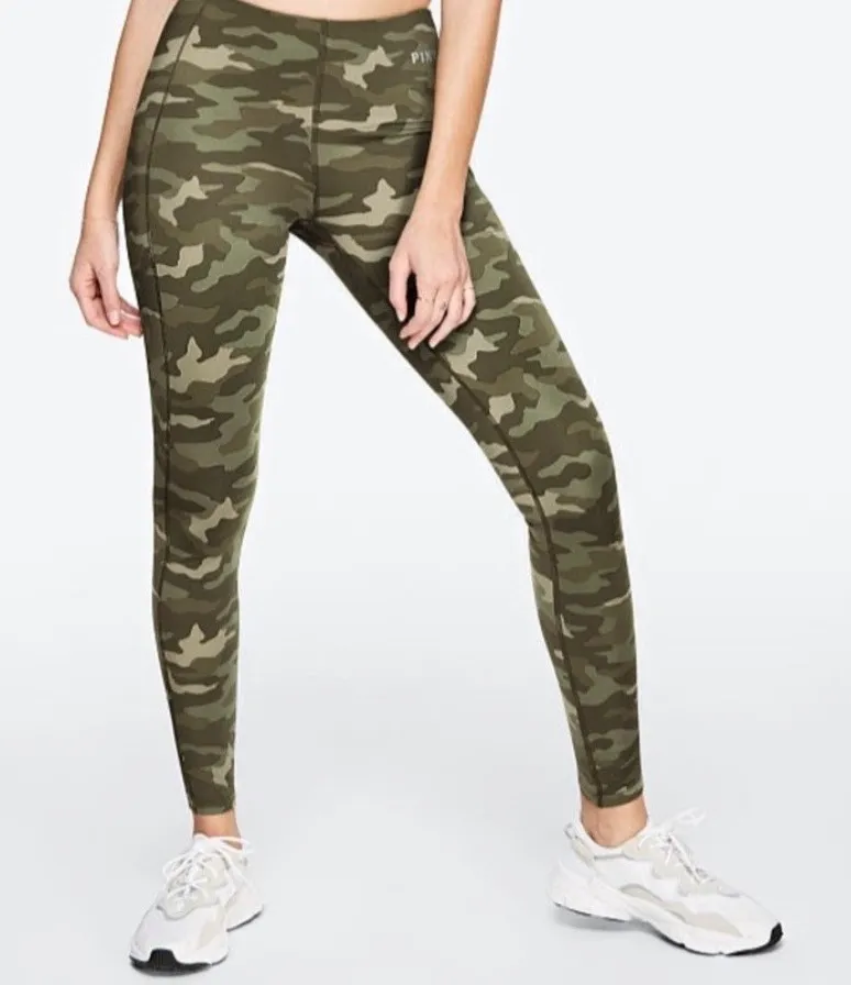 PINK Victoria's Secret Active Green Camouflage Leggings Size Small Polyamide/elastane Waist pocket... Show more