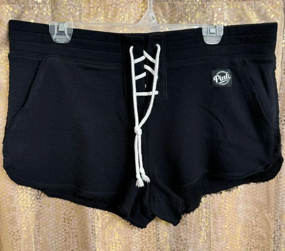 PINK Victorias Secret Black Drawstring Cotton Lounge Shorts Large Great gently used condition, smo... Show more