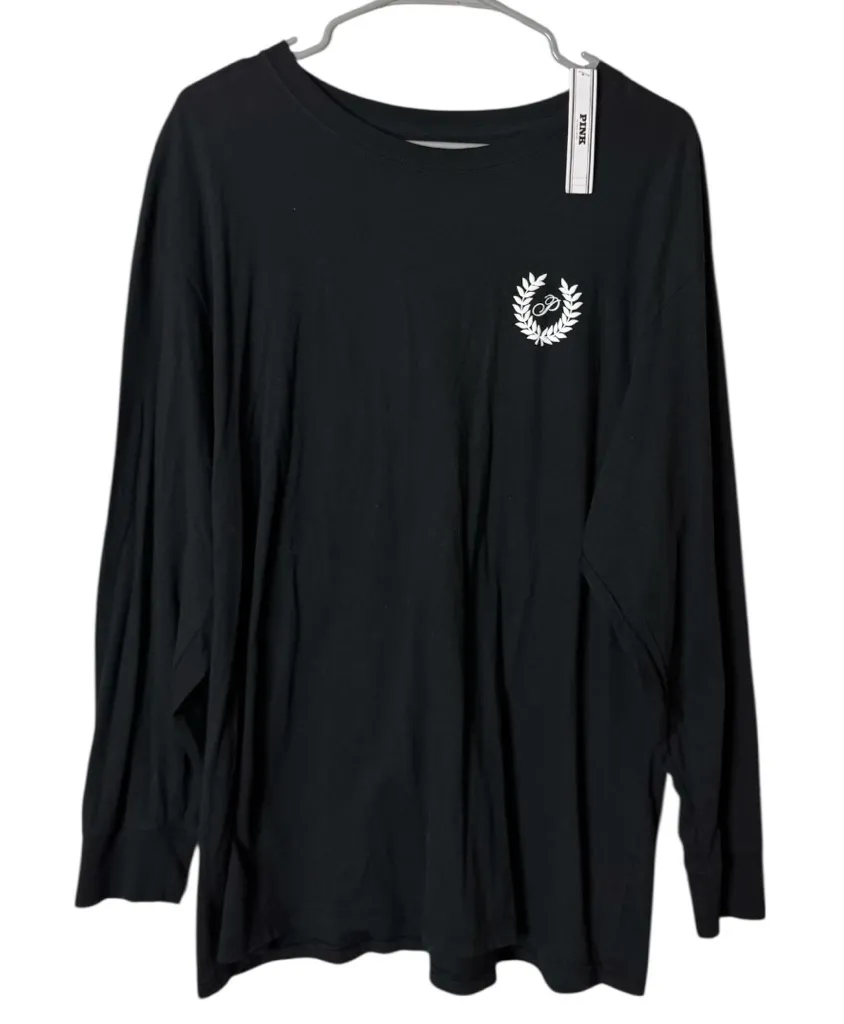 PINK Victoria's Secret Black Long Sleeve Graphic Style Shirt Sz L NWT Stylish black long sleeve s... Show more