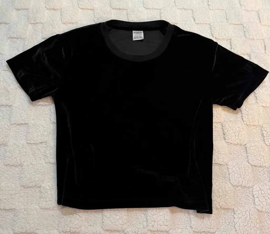 PINK Victoria’s Secret Black Velvet Short Sleeve Top, Women’s Size Small – Soft velvet fabric with a... Show more