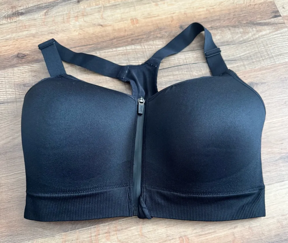 Chic black bra with zip-front design. Offers support and style. Ideal for daily wear. Size M DD New... Show more