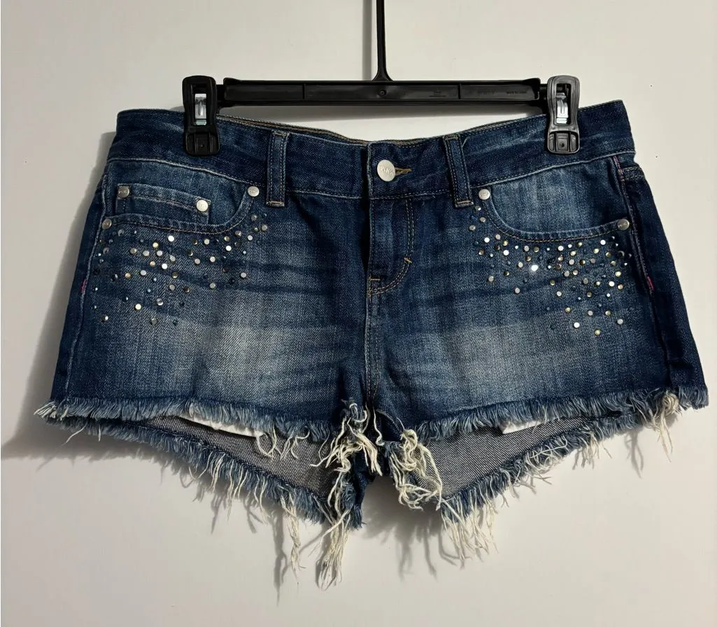 These PINK Victoria's Secret jean shorts showcase a striking blue hue with a trendy ombre effect, se... Show more