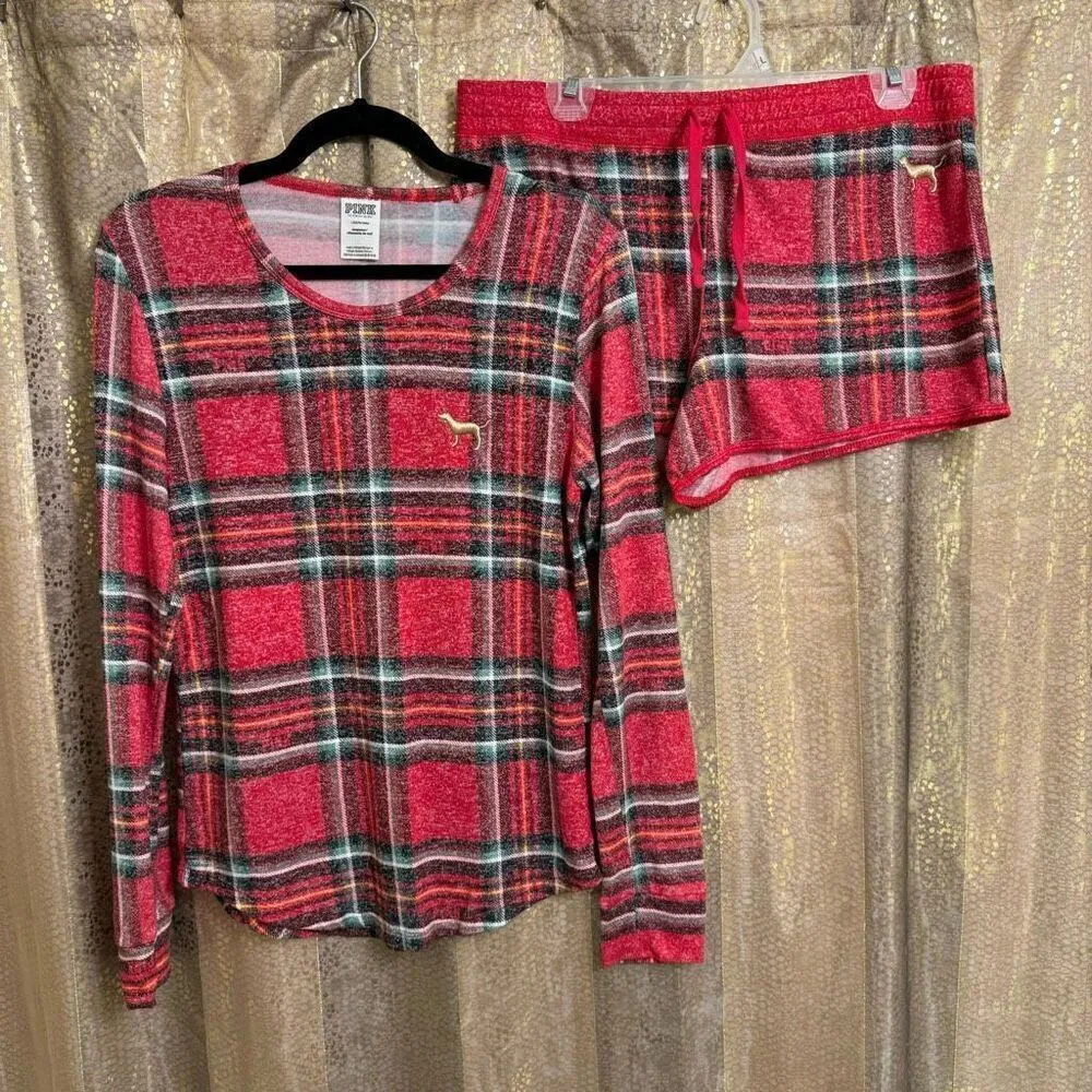 PINK Victorias Secret Cozy Red Plaid Holiday Pajama Shorts Set Large Great condition, smoke and pet... Show more