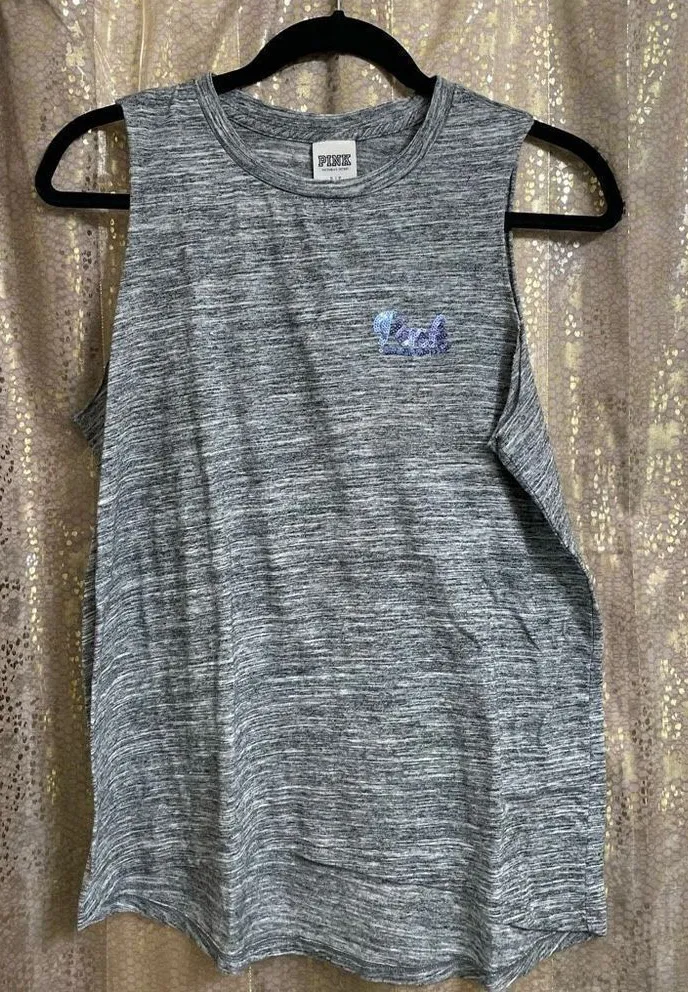 PINK Victorias Secret Gray Sequin Bling Colorful Ombre Tank Top, Small Excellent condition, like n... Show more