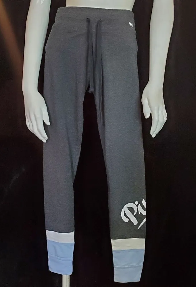 Pink Victoria's Secret Yoga gray, white, and blue colorblock pants. Size: Small Body: 52% Cotton,... Show more