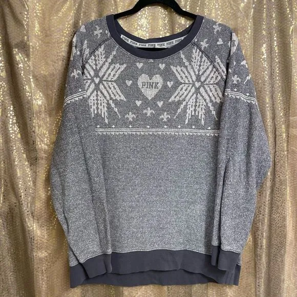 PINK Victorias Secret Gray White Snowflake Holiday Sweater, Oversized Small Great gently used cond... Show more