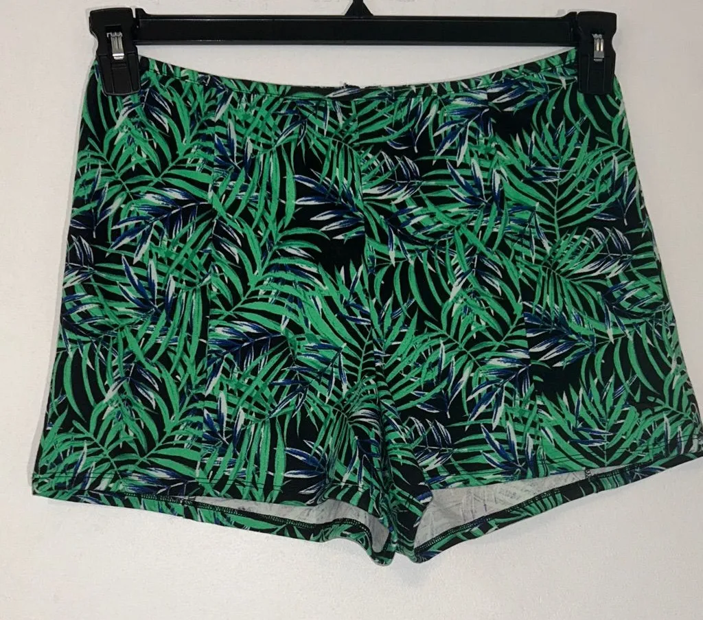 Chic high waist shorts with vibrant green leaf pattern. Perfect for casual outings or workouts. 1158... Show more