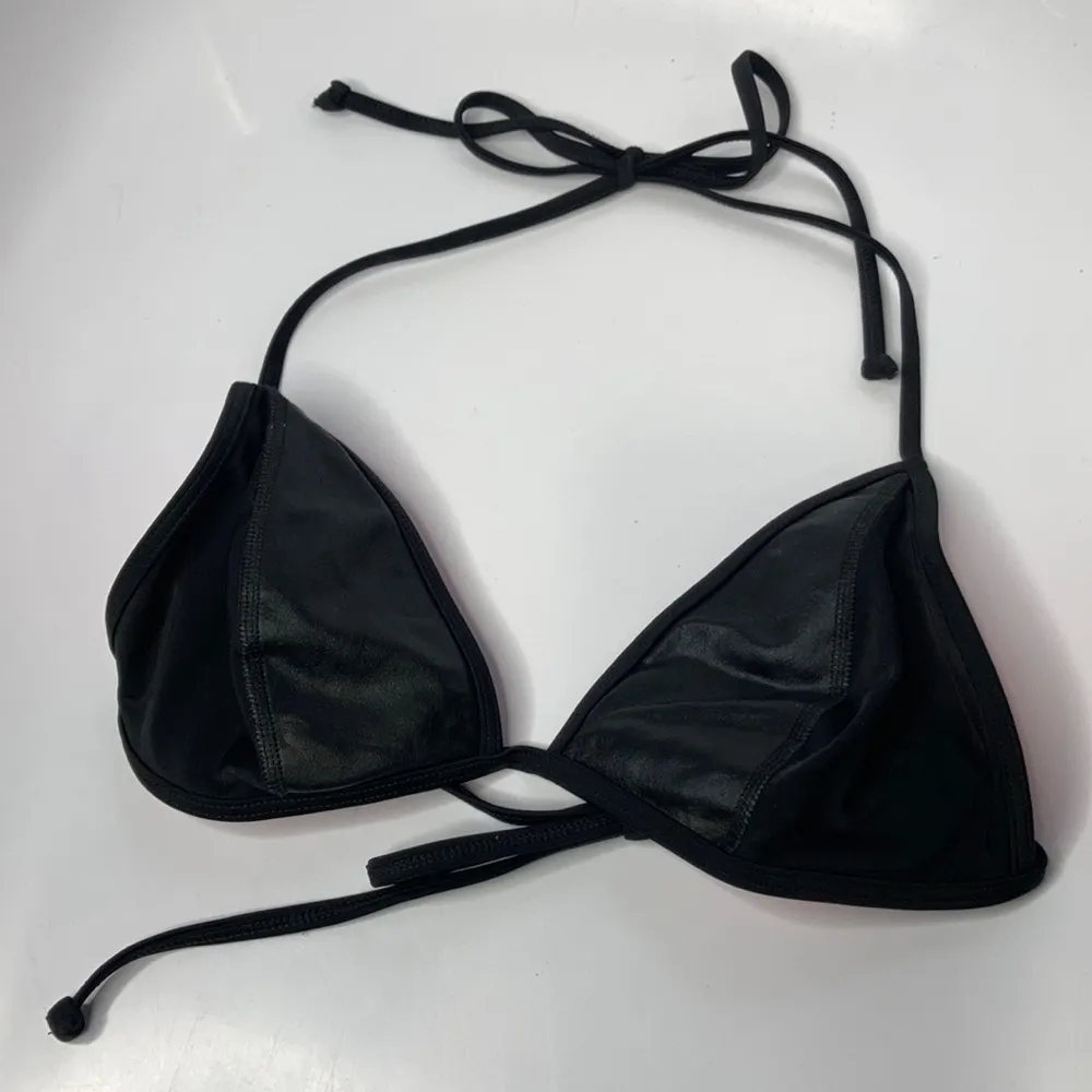 PINK Victoria’s Secret halter top tie bikini top Two tone black, one faux leather No padding size... Show more
