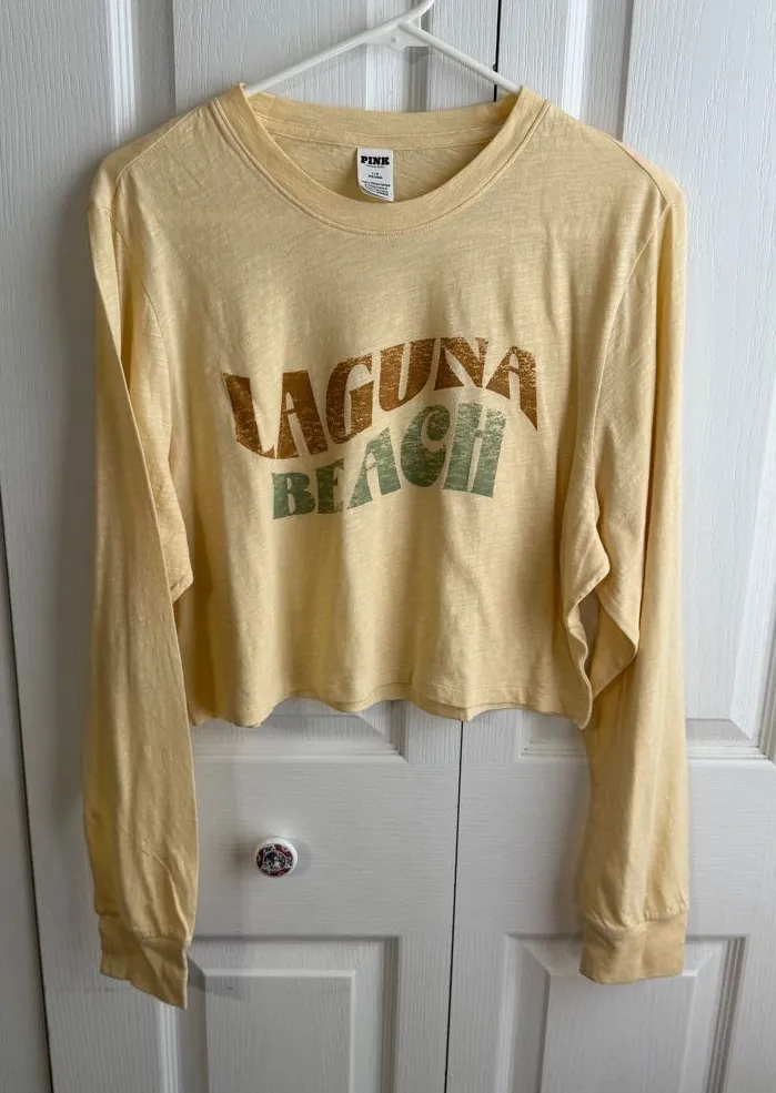 Laguna Beach yellow long sleeve cropped tee size large Measurements are approximate Pit to pit 20... Show more