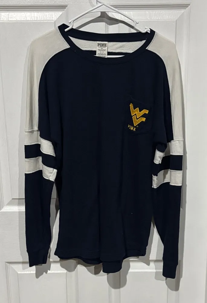 PINK Victoria's Secret Navy and Cream Long Sleeve Shirt West Virginia Blue - $25 - From Cortni