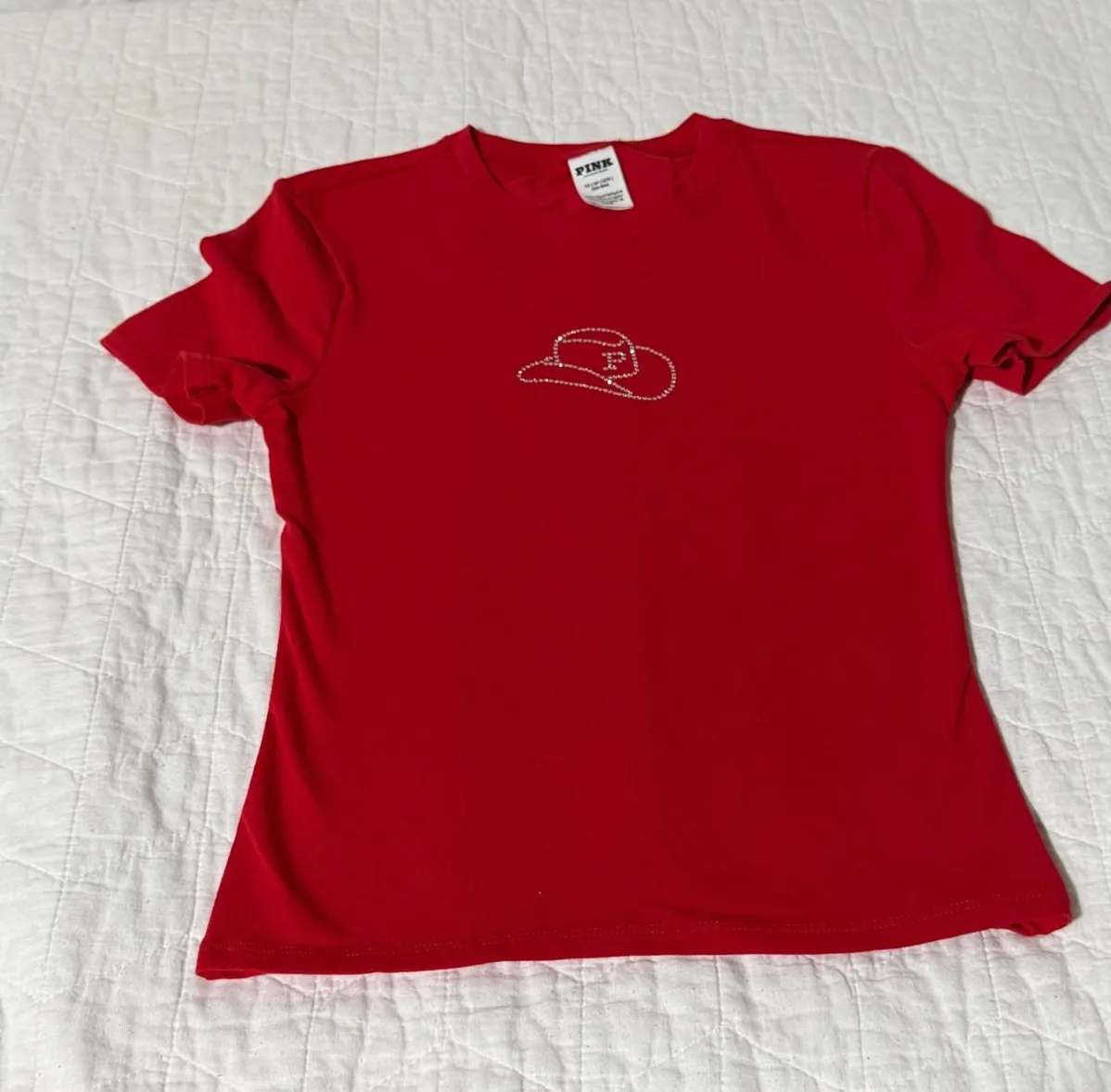 Bin cc Keywords: PINK, Victoria's Secret, graphic tee, cowboy hat, rhinestone, sparkle, red shirt,... Show more