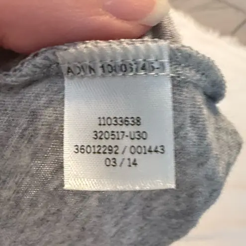 Rolled sleeves Higher in front than back Cotton polyester blend Scoop neckline Light stain as show... Show more