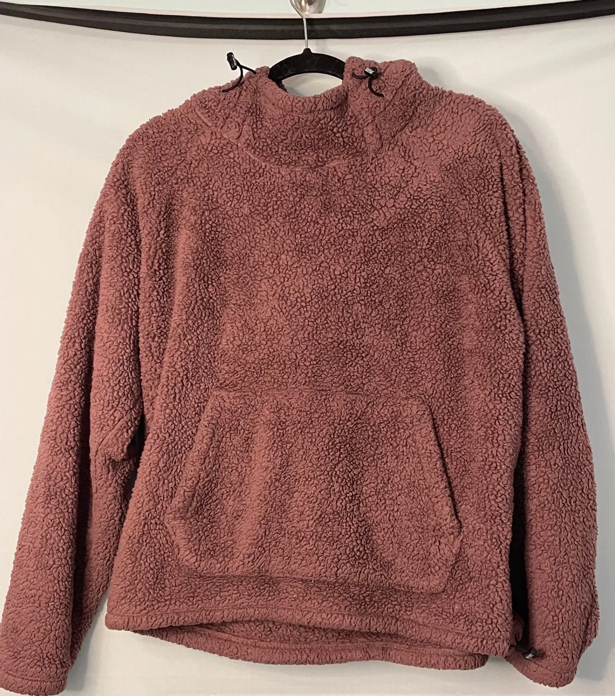 Keywords: PINK Victoria's Secret, Sherpa Pullover, Hoodie, Sweatshirt, Womens, Medium, Cozy, Mauve, Kangaroo Pocket, Drawstring, Relaxed Fit, Casual, Loungewear, Athleisure, Warm