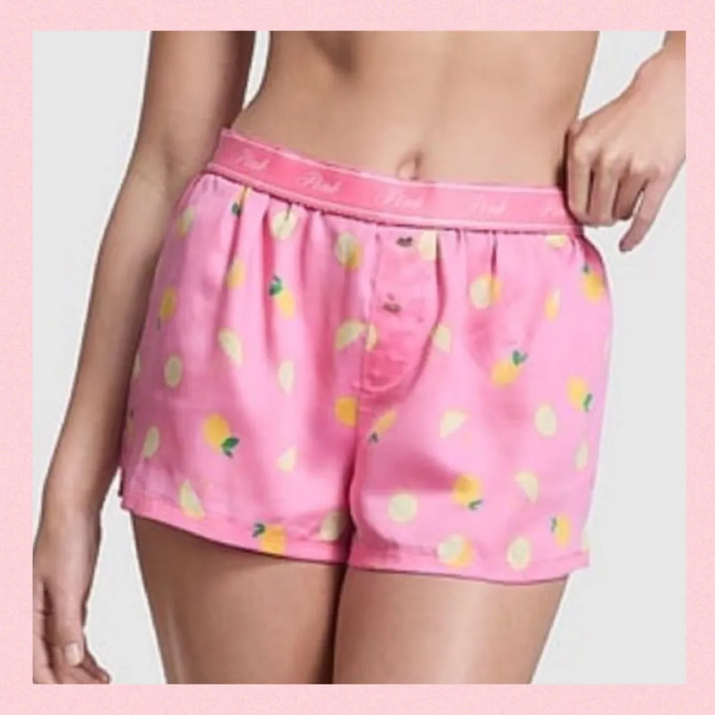PINK Victoria’s Secret Silky Boxy Pajama Shorts Pink Lemons 🩷🍋 Condition: New with tags, no flaws... Show more