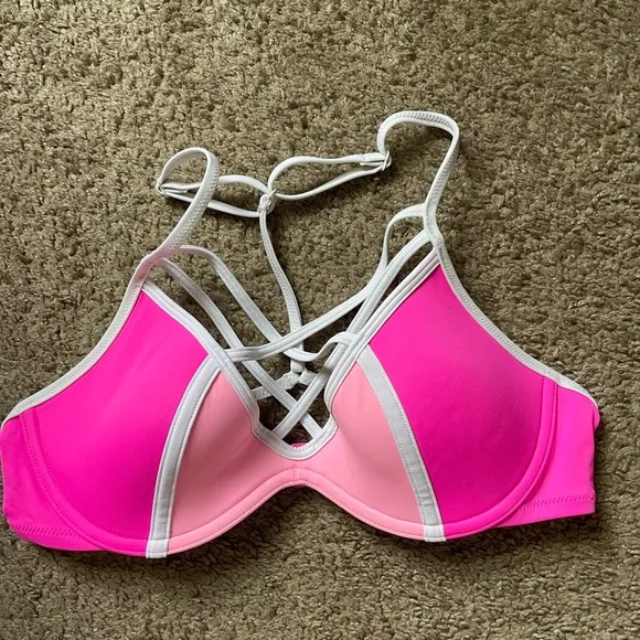 PINK Victoria’s Secret small pink and white cupped & padded bikini swimsuit top - $13 - From reilly