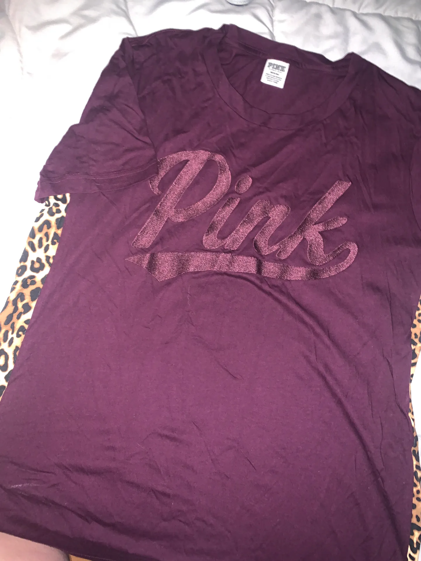Burgundy Pink-VS t-shirt with cheetah print detail on the sides. I have never worn this shirt becaus... Show more