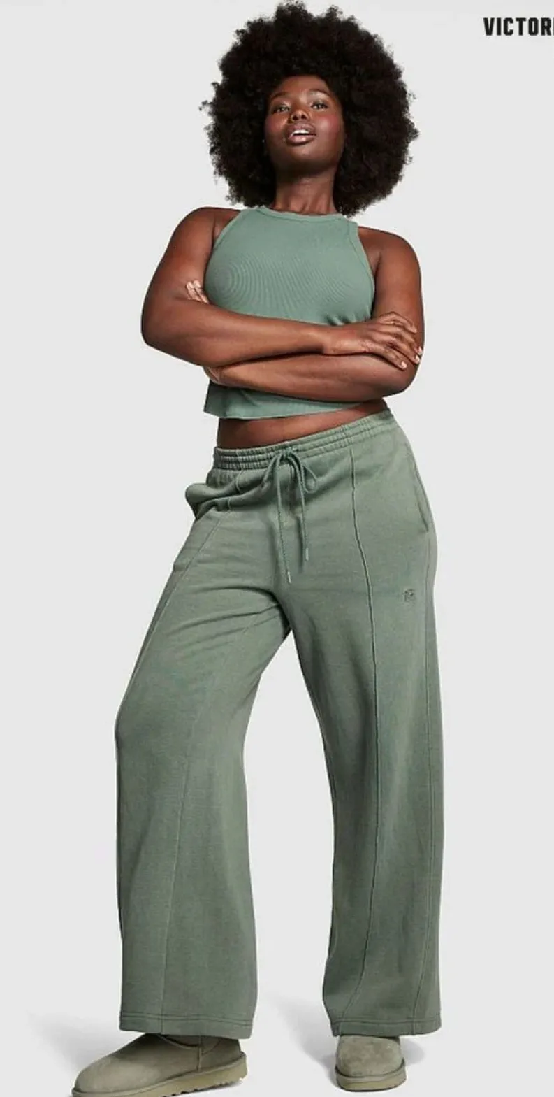 PINK Victoria's Secret Wide-Leg Sweatpants Green Size L - $12 - From Elizabeth