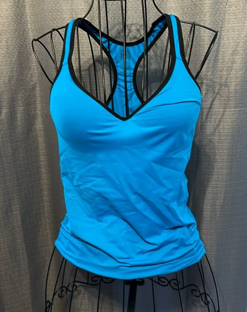 Pink Victoria’s secret’s yoga tank top Build in padded bra Size medium Blue and black Pink logo o... Show more