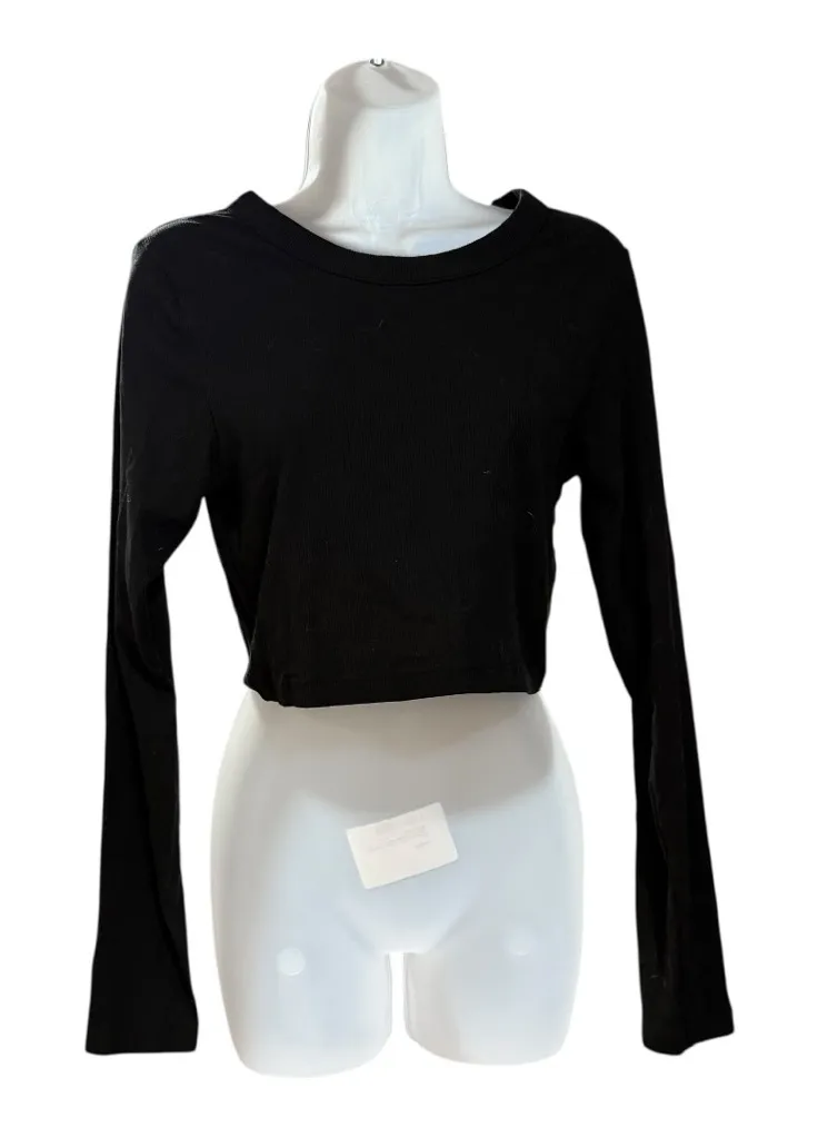 PINK VS Black Cropped Long Sleeve Top Y2K Minimal Clean Girl Basic Size L - $17 - From Rebecca