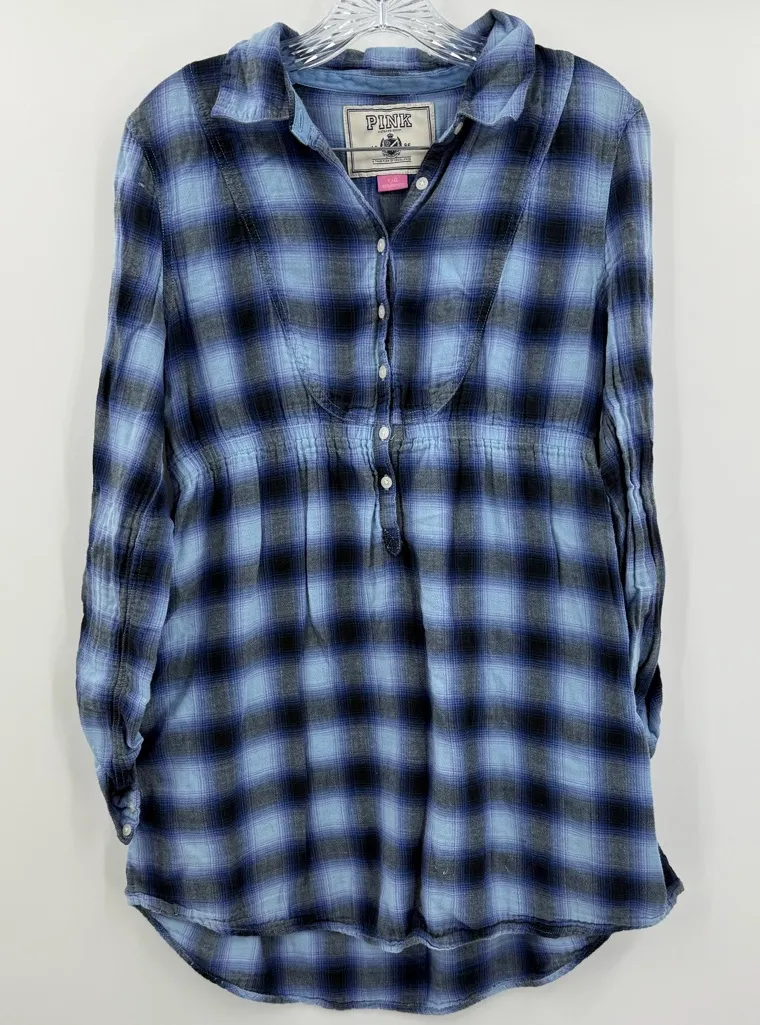 PINK Victoria's Secret Plaid Button Up Babydoll Top Shirt Size Large Y2K Styled like a shirt, look... Show more
