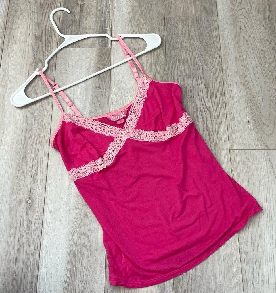 Victoria's Secret Pink Y2K Cami in the color Pink. V neckline, lace trim, thin cami straps, slightly... Show more