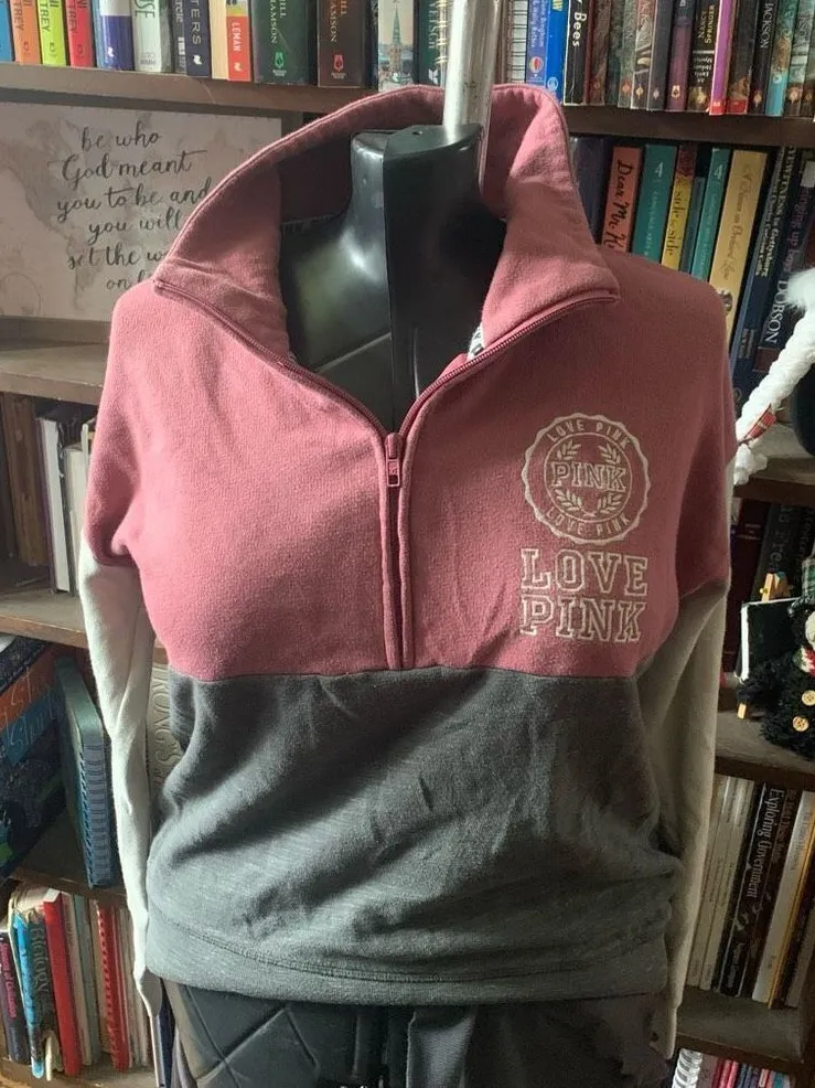 Victoria’s Secret Pink color block, muted colors, 1/4 zip, cozy pullover sweatshirt. Pairs well with... Show more