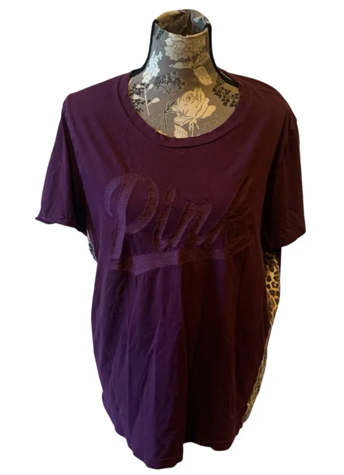 Preloved in good condition with some wash wear/minor fading Size large Burgundy color with leopard d... Show more