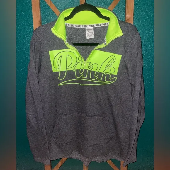 Charcoal top with neon green accents. Features 'PINK' logo detailing. Good condition Smoke free, pe... Show more