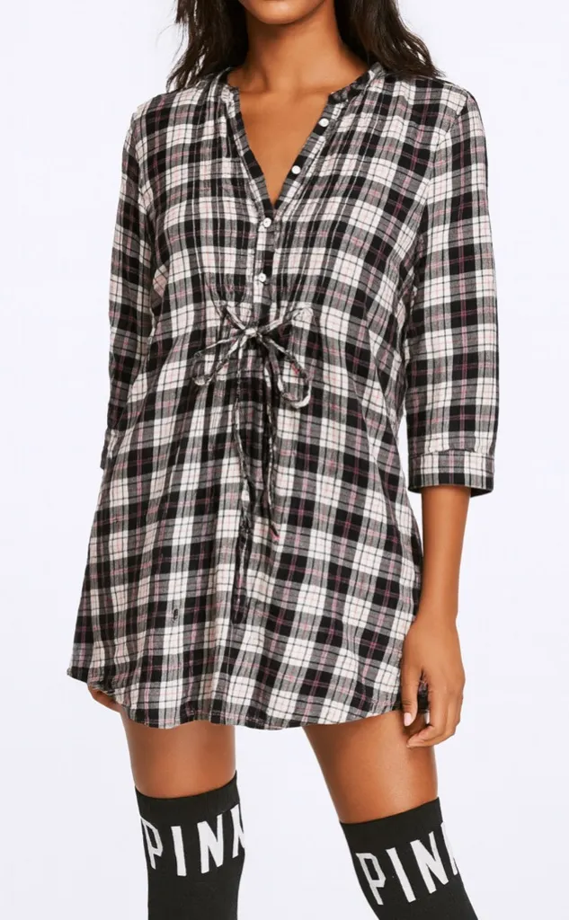 Victorias Secret PINK Women's Black Plaid Button Tie Waist Campus Tunic Dress sz L Academia Preppy Y... Show more