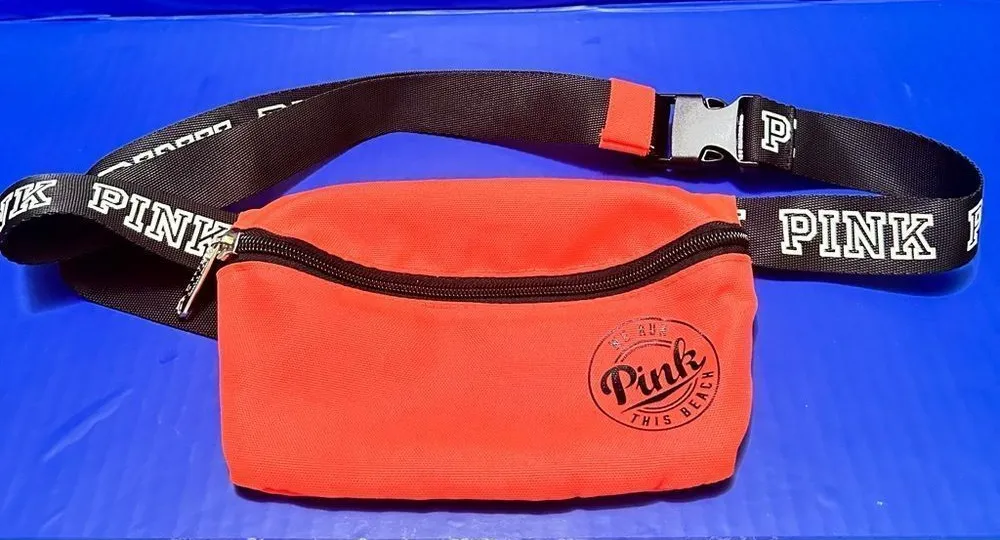 Victorias Secret PINK Fanny pack neon orange belly bag 8”1/2 x 5” We Run This Beach logo everyday pu... Show more