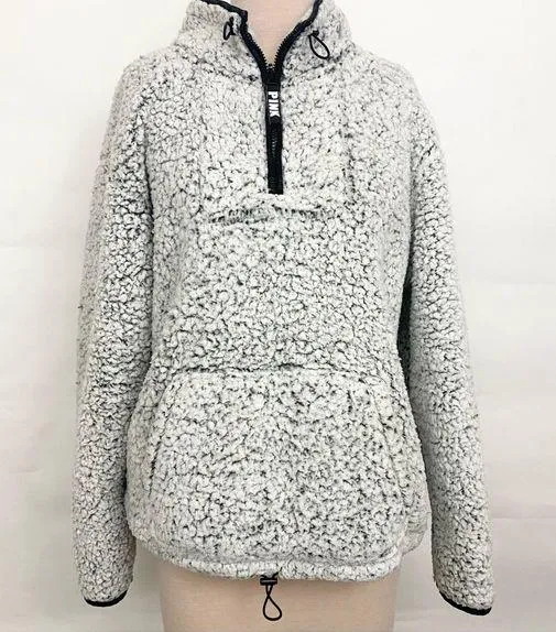 All over Sherpa (even on the inside!) Half zip with PINK zipper pull Kangaroo pocket drawcord waist... Show more