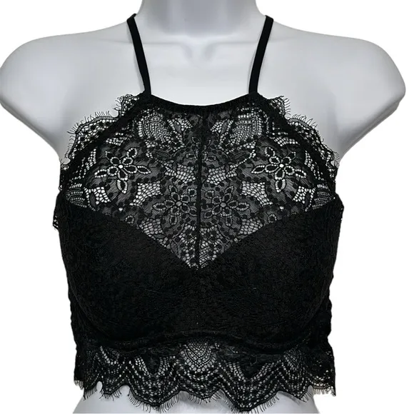 Victoria's Secret PINK Halter Bralette Bra Black Lace Cutout Racerback Small EUC - $29 - From Vir
