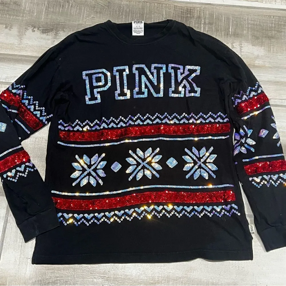 Victoria’s Secret Pink Holiday Fair Isle Sequin Long Sleeve Women’s Small Measurements- Pit to Pit:... Show more