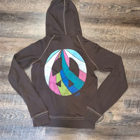 Victoria’s Secret PINK Hoodie Brown Rainbow Peace Sign Size Medium - $27 - From Mac