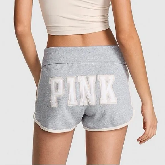 VICTORIA’S SECRET PINK Ivy Terry Foldover Shorts Medium Heather Grey & White Contrasting Seams With... Show more