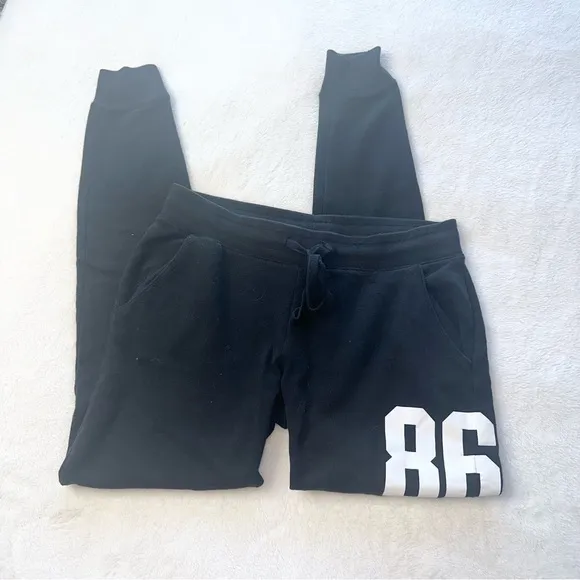 -Good condition; cracks in lettering & fuzzies -Size XS -Drawstring closure -Two side pockets -Blac... Show more