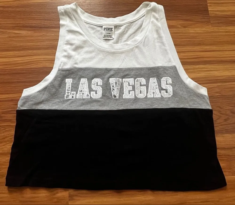 Victoria’s Secret Pink Las Vegas Sequin Tank Top Colorblock Gray Black White Size M Sequined with t... Show more