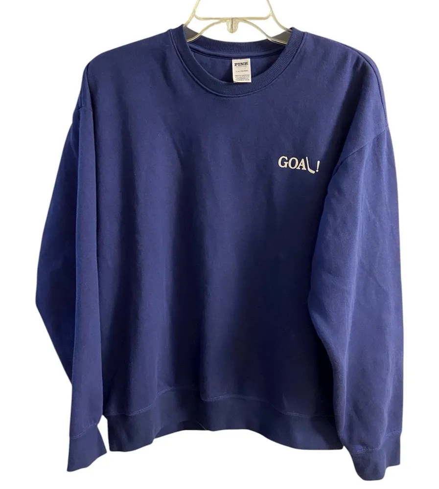 Victoria’s Secret pink navy blue crewneck sweatshirt goal hockey Large NWT - $35 New With Tags - From Ghadeer