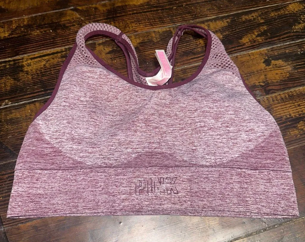 Victoria’s Secret heathered purple, seamless, sporty, low/medium impact, workout bra. 14 inches acro... Show more