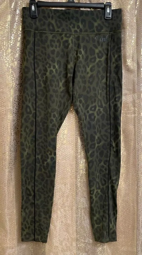 Victoria’s Secret Pink Ultimate Women’s Medium Animal Print Green Black Leggings Women’s Medium Good... Show more