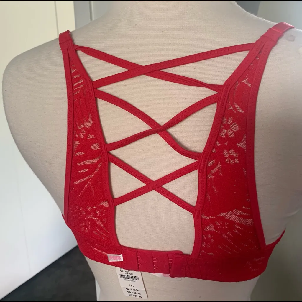 ⭐️BRAND NEW WITH TAGS⭐️ Victoria’s Secret PINK Lacy Red Wireless Strappy Back Push-up Bra Padded; 3... Show more