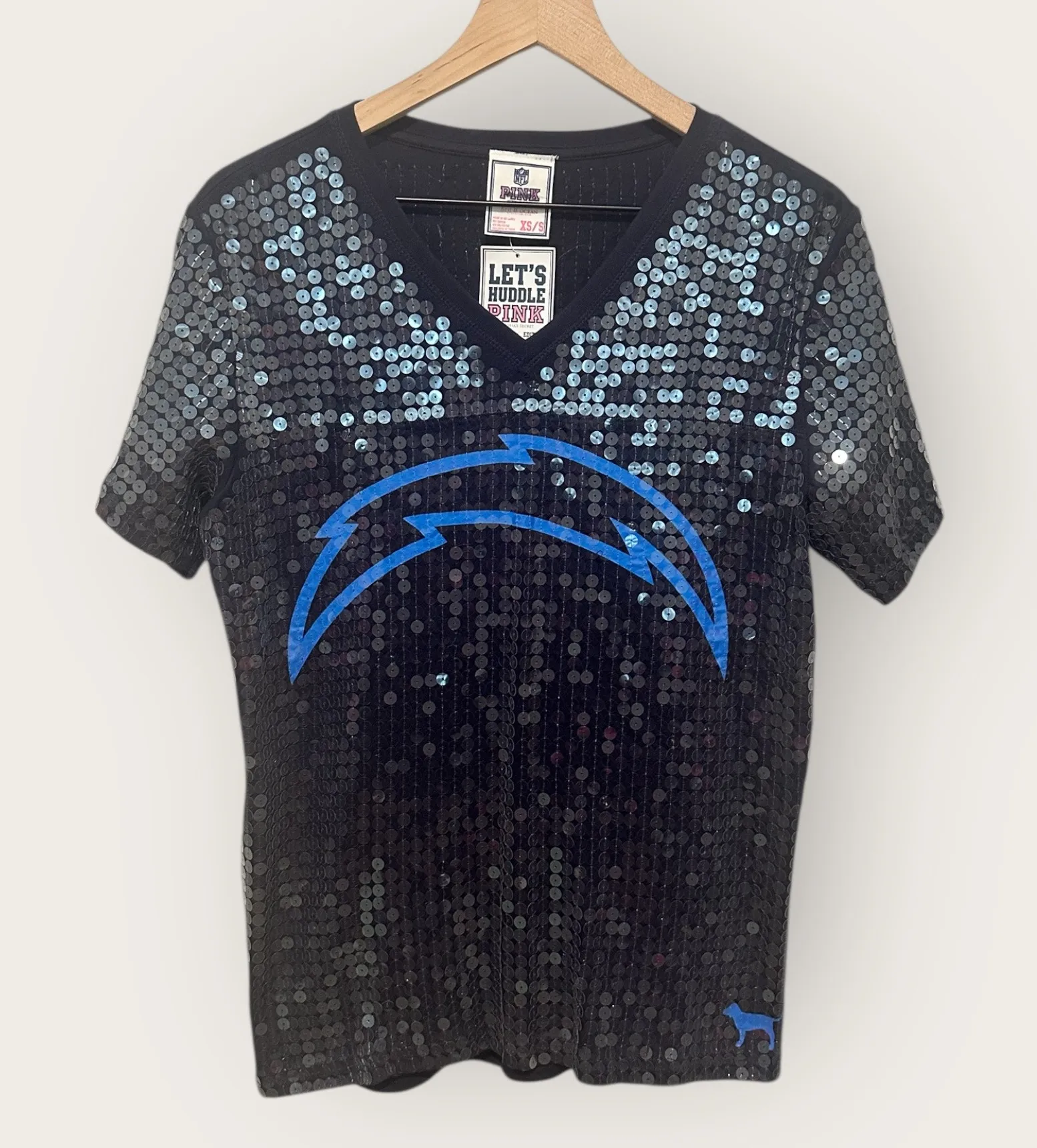 Victoria’s Secret Pink XS Small Los Angeles LA Chargers Sequin Short Sleeve Top MEASUREMENTS: Pit t... Show more