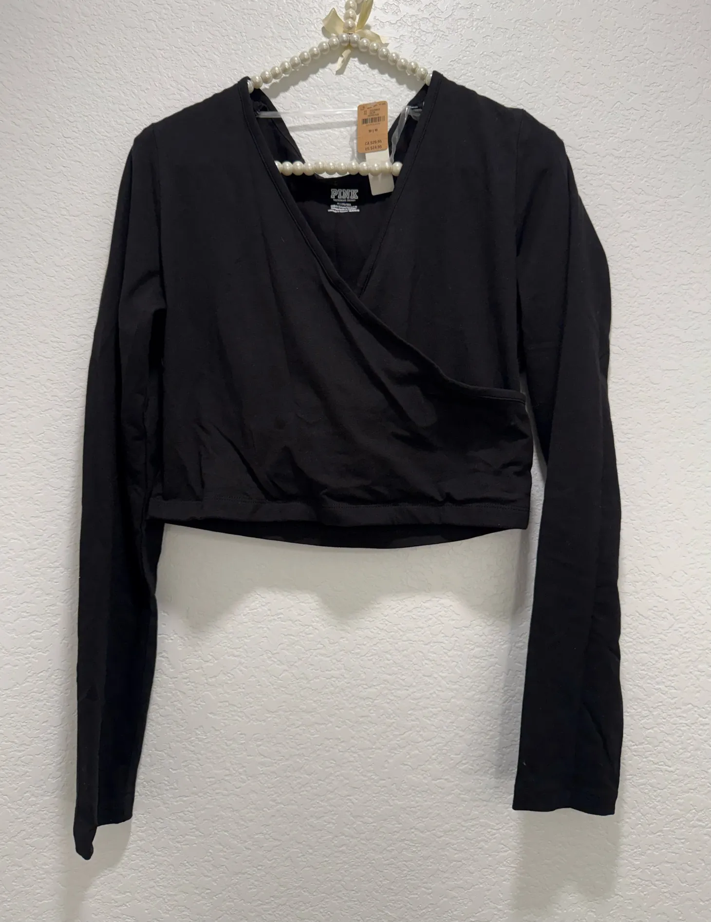 VS Pink Black long sleeve wrap top Size M - $20 New With Tags - From Jule
