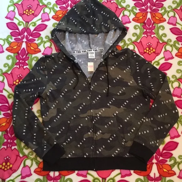 Vs pink camo perfect logo zip up hoodie Size L - $47 New With Tags - From Vanessa