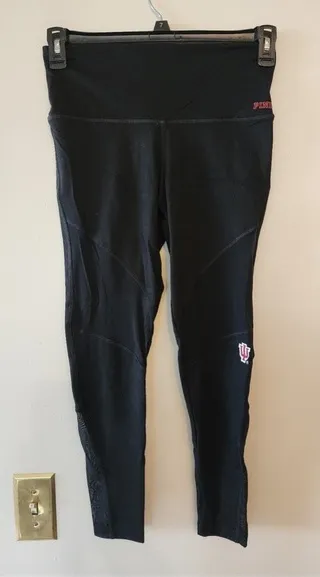 VS PINK Indiana University IU Hoosiers Ultimate Active Yoga Legging Mesh 3/4 Size Small Black and r... Show more
