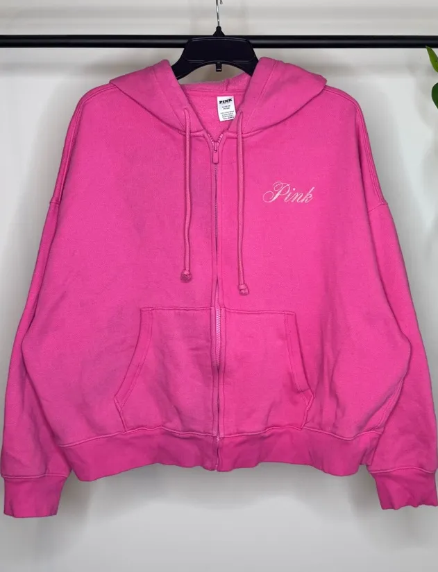 Victorias Secret Pink Ivy Campus Fleece Full Zip Hoodie Jersey Shore Graphic Radiant Rose Jersey... Show more
